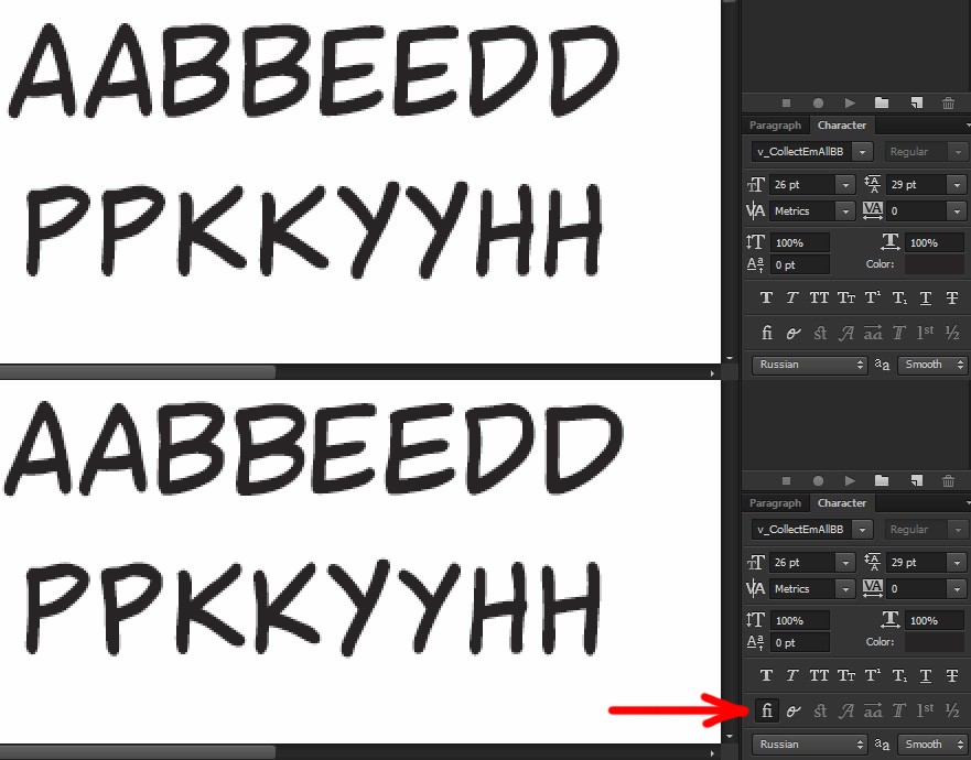 Я всех обманул, и вместо четвёртой части пусть будет весь пак целиком, так как в этом году больше ничего делать не планирую. Пересмотрена последняя папка, MISC, в которой собраны все оставшиеся шрифты, 88 штук, которые были мне нужны для совершенно разных целей - логотипов, вывесок, текстовых вставок и прочего. Плюс я наконец разобрался, почему не работали лигатуры в нескольких диалоговых шрифтах и вернулся довёл их до ума. Для простоты поиска все шрифты с лигатурами имеют расширение otf, их там немного. Если не понятно, что за лигатуры такие, то вот: